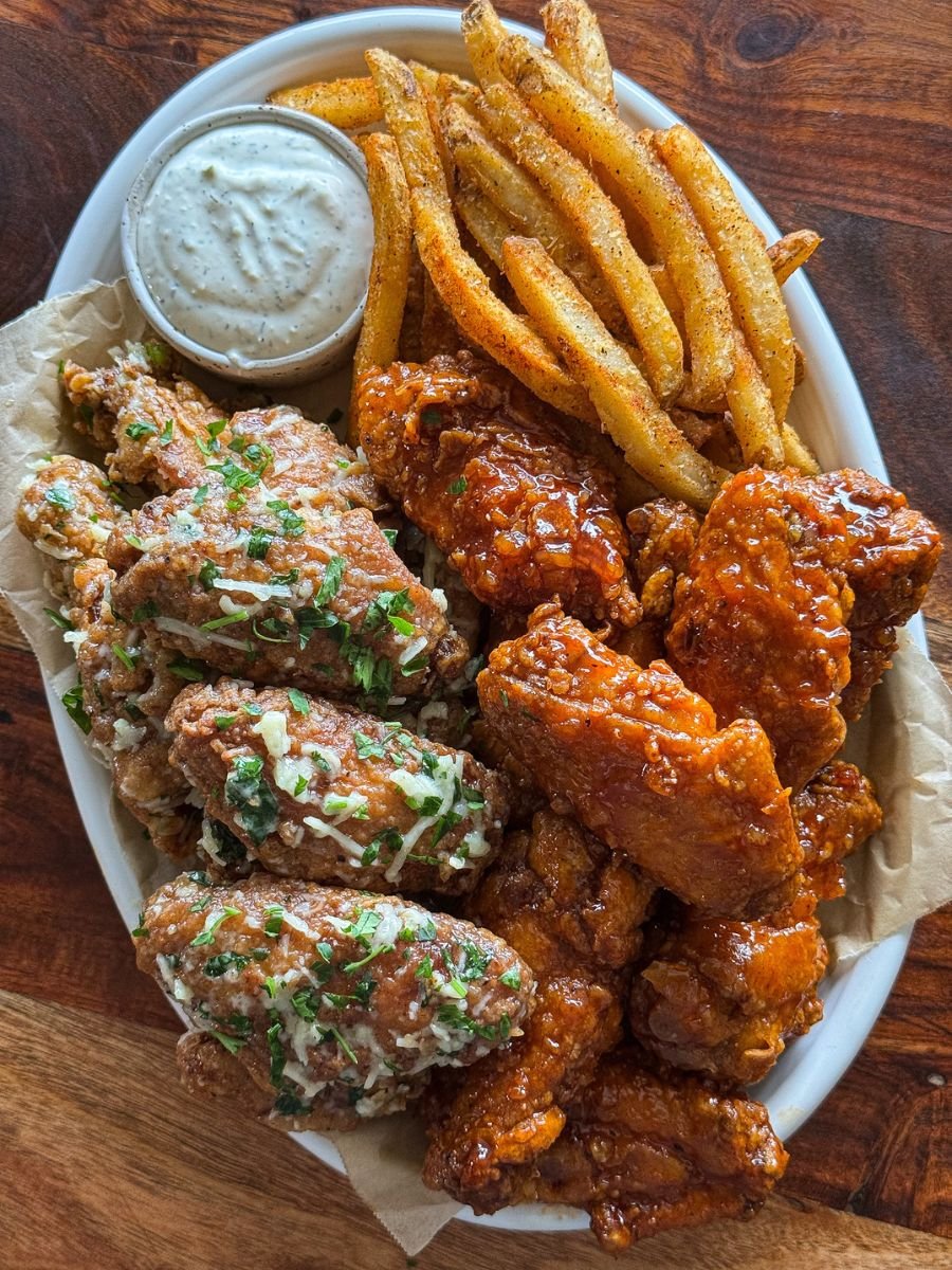 - 1 1/2 pounds chicken wings, combo of flats and drumettes
